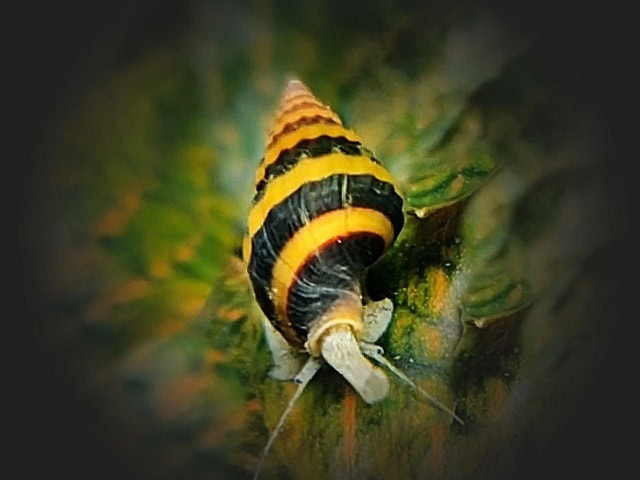 Haltung: Diese sehr schön gezeichnete Raubschnecke frißt andere Schneckenarten, wie Posthorn-Blasen -und Turmdeckelschnecken sowie Futterrester vom Boden.